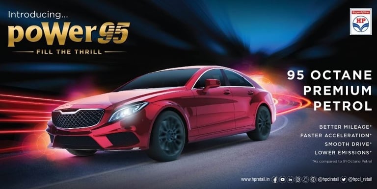 𝗛𝗣 𝗥𝗲𝘁𝗮𝗶𝗹 brings you 𝗽𝗼𝗪𝗲𝗿𝟵𝟱, a premium, high-octane fuel for cars and bikes, developed at HPCL’s cutting-edge R&D Centre. It reduces engine knocking for a smoother drive, better mileage, quicker acceleration, and lower emissions. 𝗥𝗲𝗳𝘂𝗲𝗹 𝘄𝗶𝘁𝗵 𝗽𝗼𝗪𝗲𝗿𝟵𝟱 𝘃𝗶𝗮 𝗛𝗣 𝗣𝗔𝗬 𝗮𝗻𝗱 𝗲𝗻𝗷𝗼𝘆 𝗰𝗮𝘀𝗵𝗯𝗮𝗰𝗸 𝗲𝘃𝗲𝗿𝘆 𝘁𝗶𝗺𝗲!